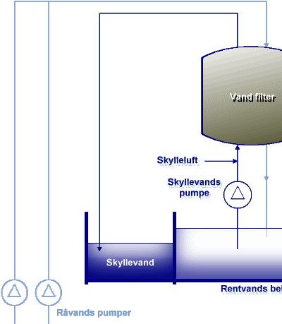 Under filterskylningen standses råvandspumperne og vandstrømmen